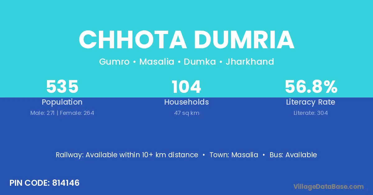 Chhota Dumria village has a total population of 535 people, of which 271 are males and 264 are females.