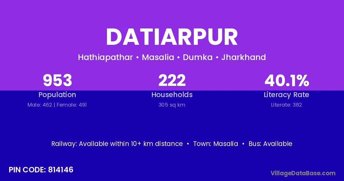 There are approximately 222 households in Datiarpur village.