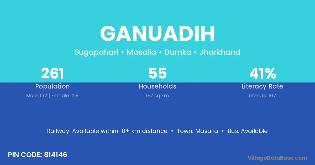 Ganuadih village has a total population of 261 people, of which 132 are males and 129 are females.