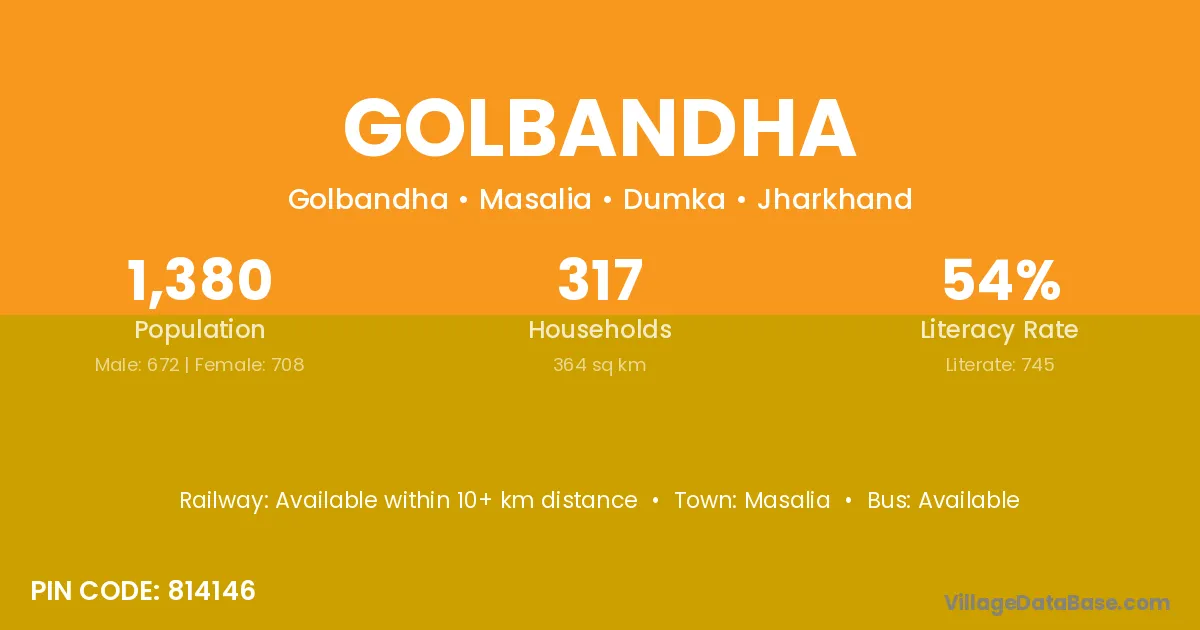 Golbandha village has a total population of 1,380 people, of which 672 are males and 708 are females.