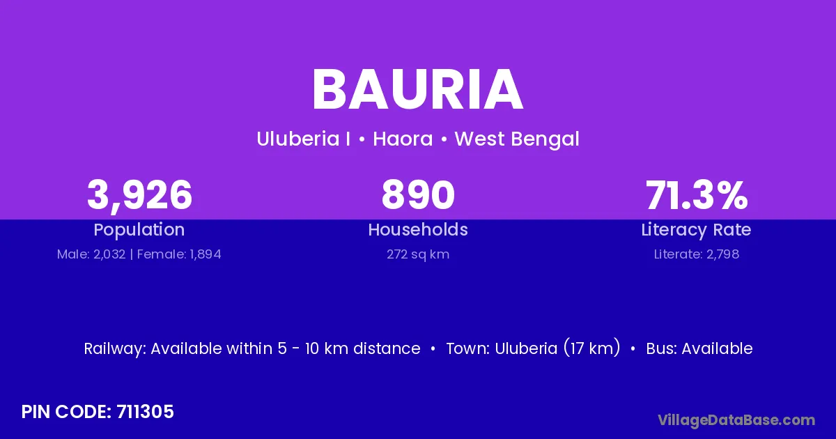 According to Census 2011 information, the village code of Bauria village is 814145.