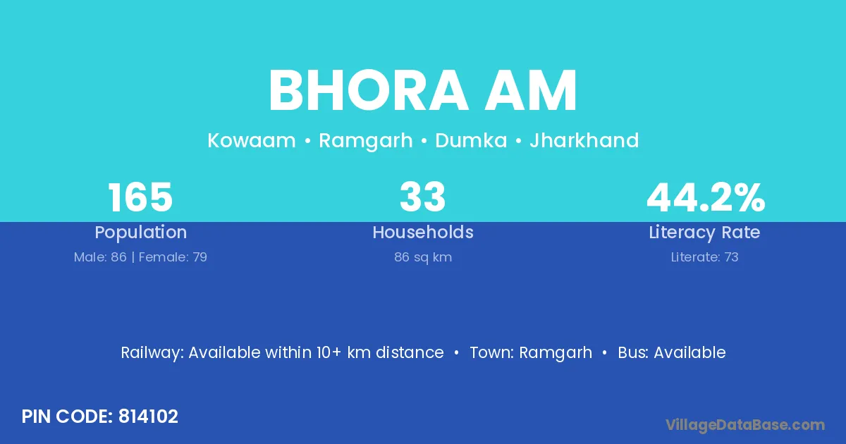 Ramgarh is the nearest town to Bhora Am village for major economic activities