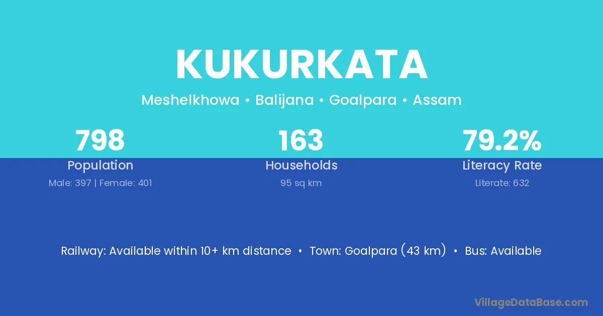 The literacy rate of Kukurkata village is 34.11%. Male literacy stands at 47.37% and female literacy at 21.13%.