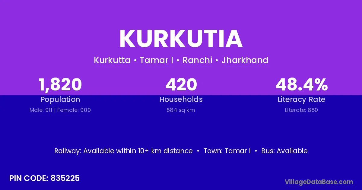According to Census 2011 information, the village code of Kurkutia village is 814145.