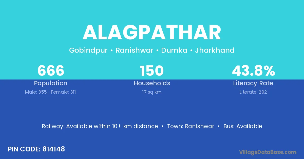 Alagpathar village is located in the Ranishwar Subdivision of the Dumka district in Jharkhand .