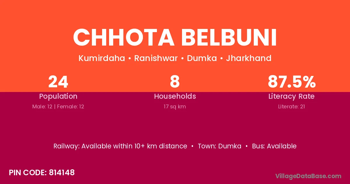 Dumka is the nearest town to Chhota Belbuni village for major economic activities