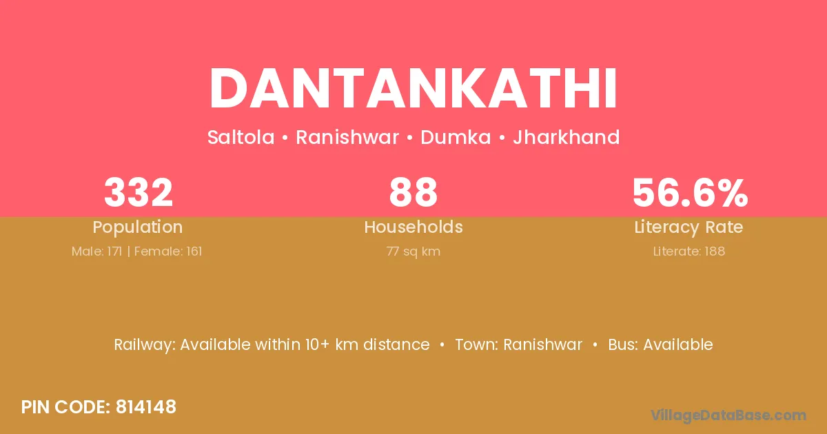 Dantankathi village has a total population of 332 people, of which 171 are males and 161 are females.