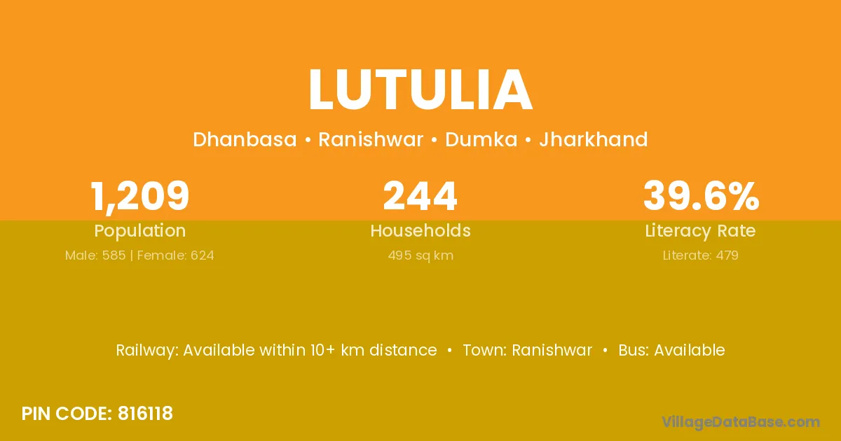 Lutulia village is located in the Ranishwar Subdivision of the Dumka district in Jharkhand .