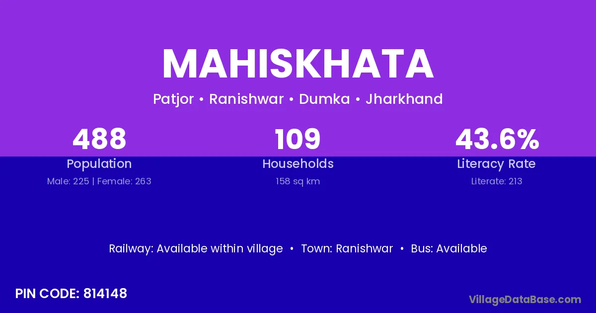 Mahiskhata village is located in the Ranishwar Subdivision of the Dumka district in Jharkhand .