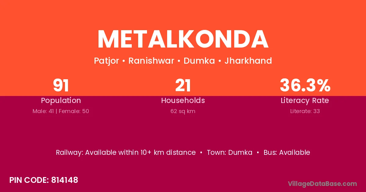 According to Census 2011 information, the village code of Metalkonda village is 814148.
