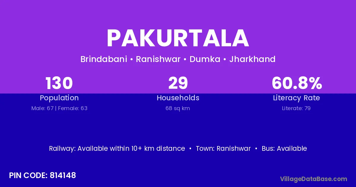 Pakurtala village has a total population of 130 people, of which 67 are males and 63 are females.
