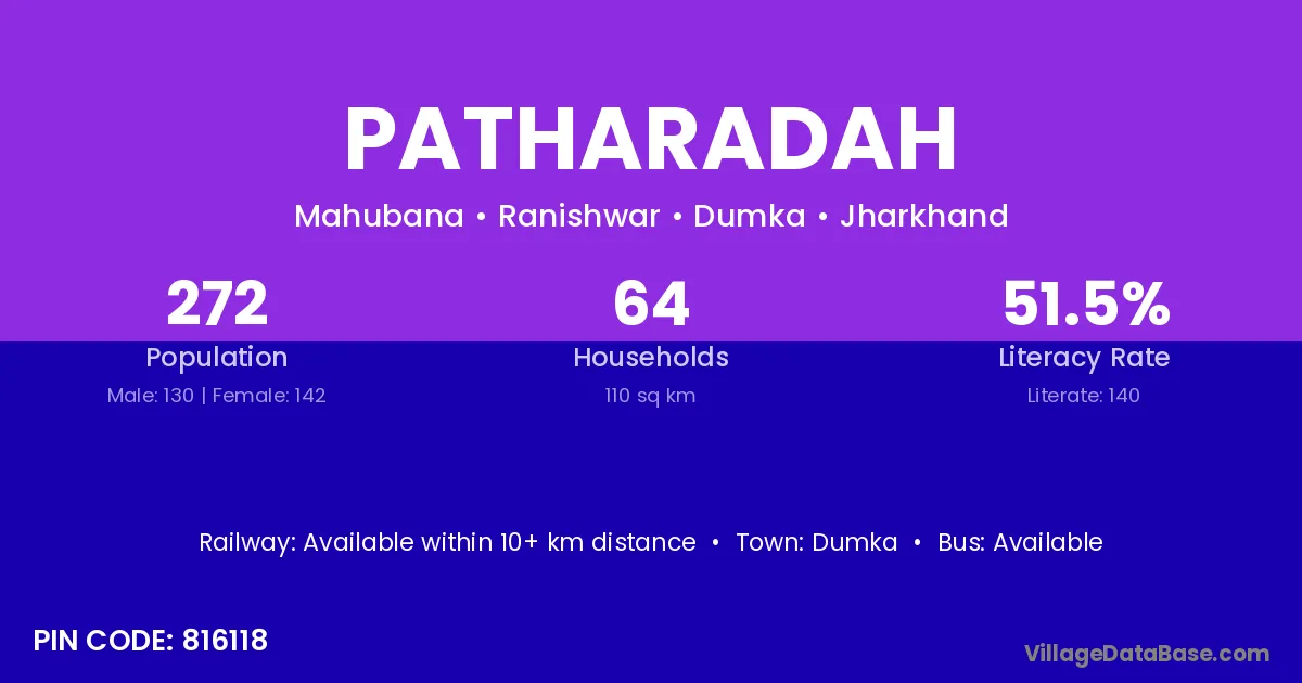 Dumka is the nearest town to Patharadah village for major economic activities