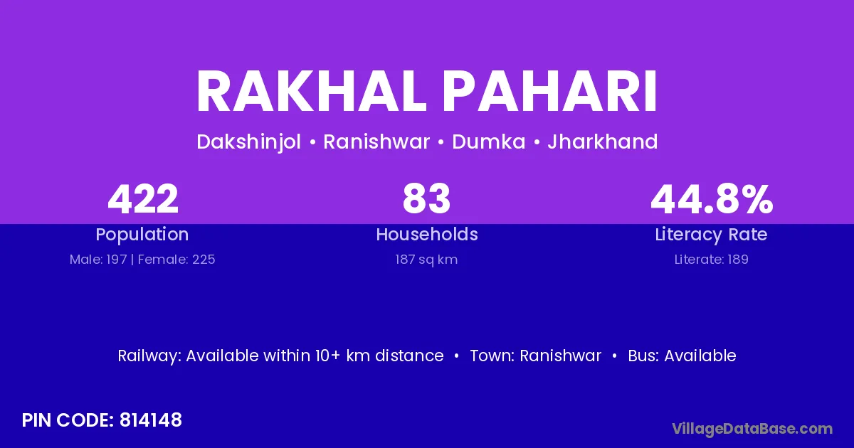Rakhal Pahari village has a total population of 422 people, of which 197 are males and 225 are females.