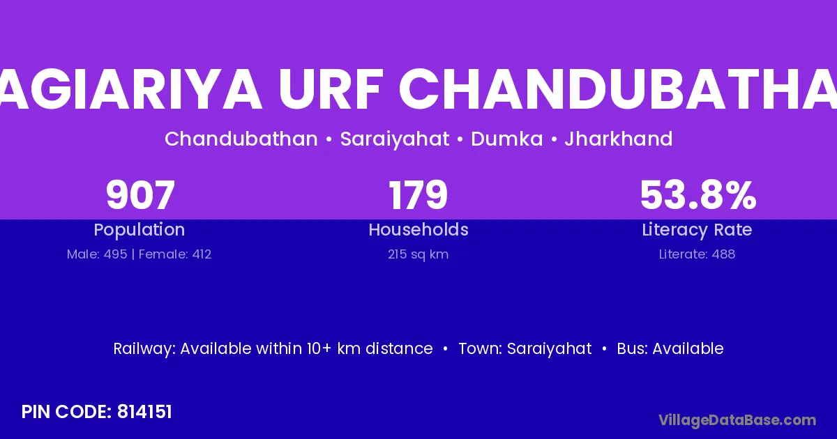 Bagiariya Urf Chandubathan village has a total population of 907 people, of which 495 are males and 412 are females.