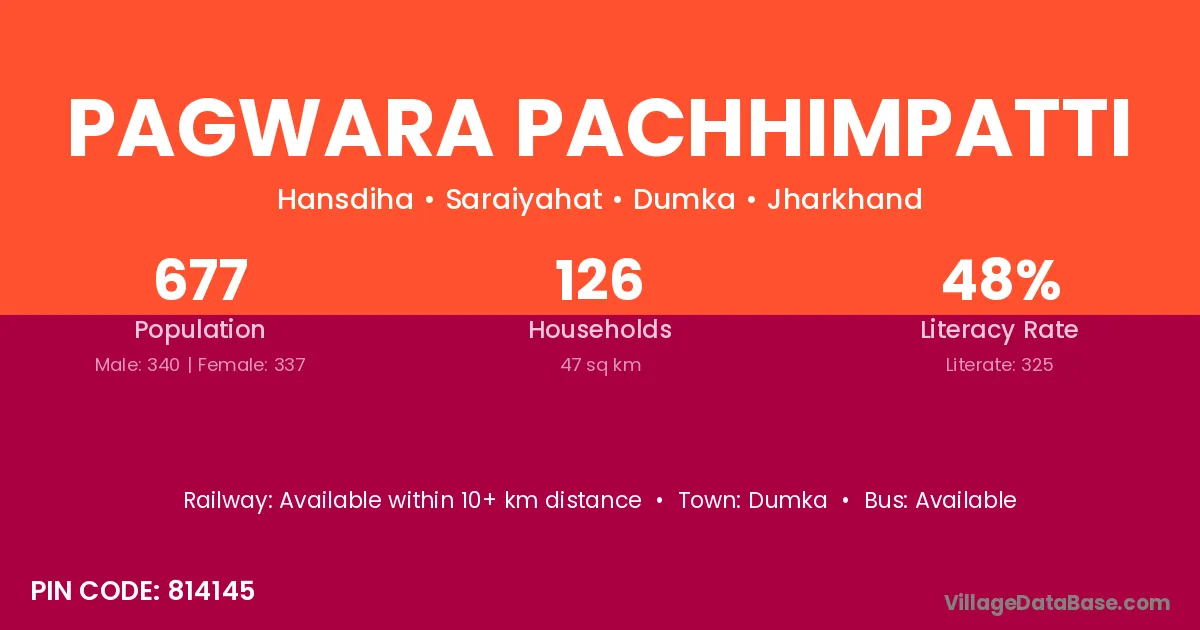 Dumka is the nearest town to Pagwara Pachhimpatti village for major economic activities
