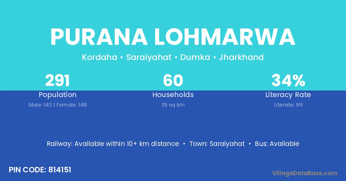 Purana Lohmarwa village has a total population of 291 people, of which 143 are males and 148 are females.