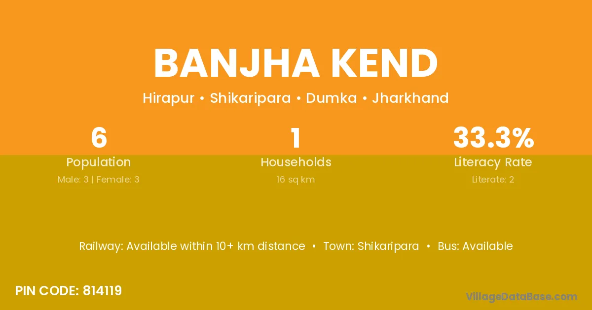 Banjha Kend village has a total population of 6 people, of which 3 are males and 3 are females.