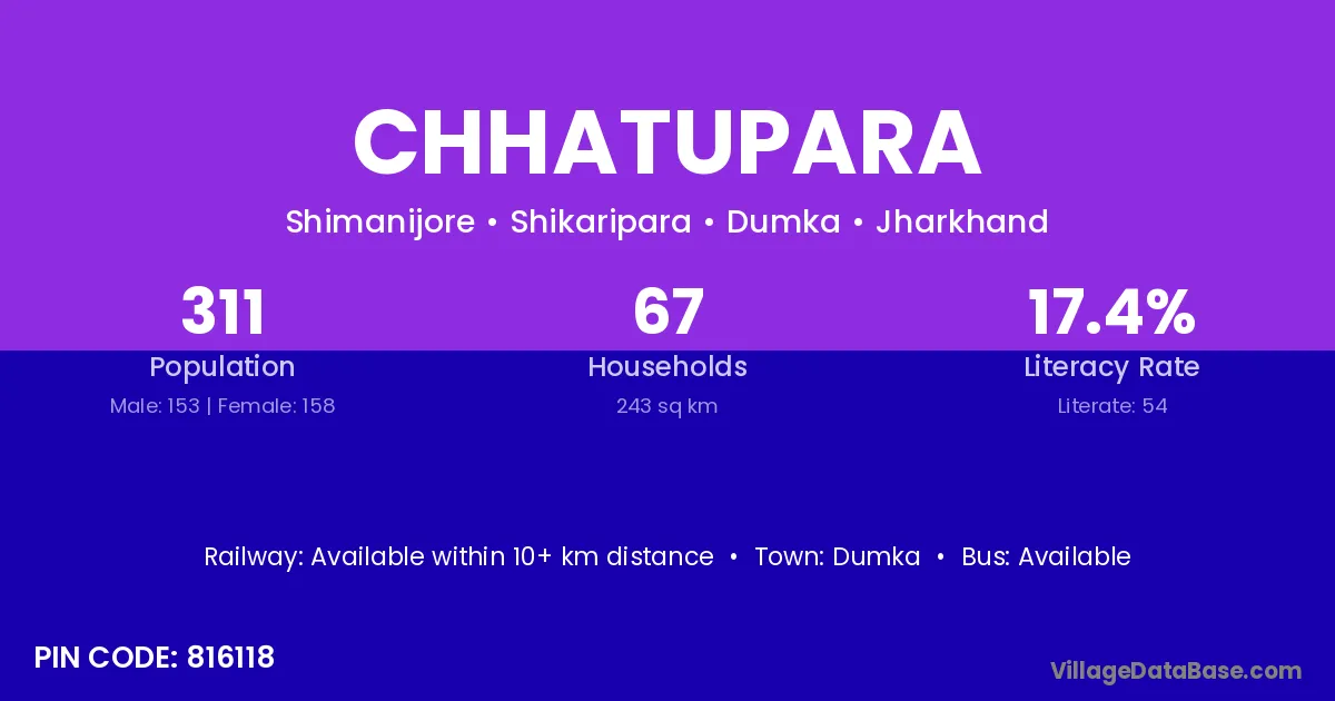 Dumka is the nearest town to Chhatupara village for major economic activities