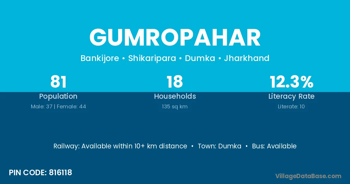 Gumropahar village has a total population of 81 people, of which 37 are males and 44 are females.
