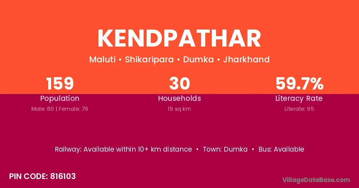 Dumka is the nearest town to Kendpathar village for major economic activities