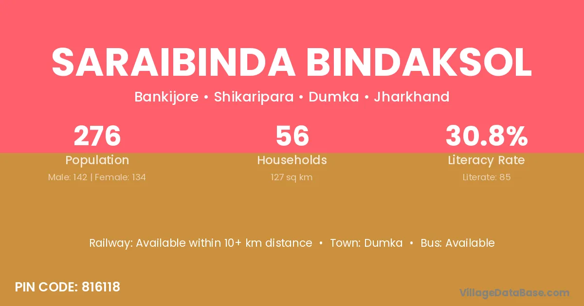 Dumka is the nearest town to Saraibinda Bindaksol village for major economic activities