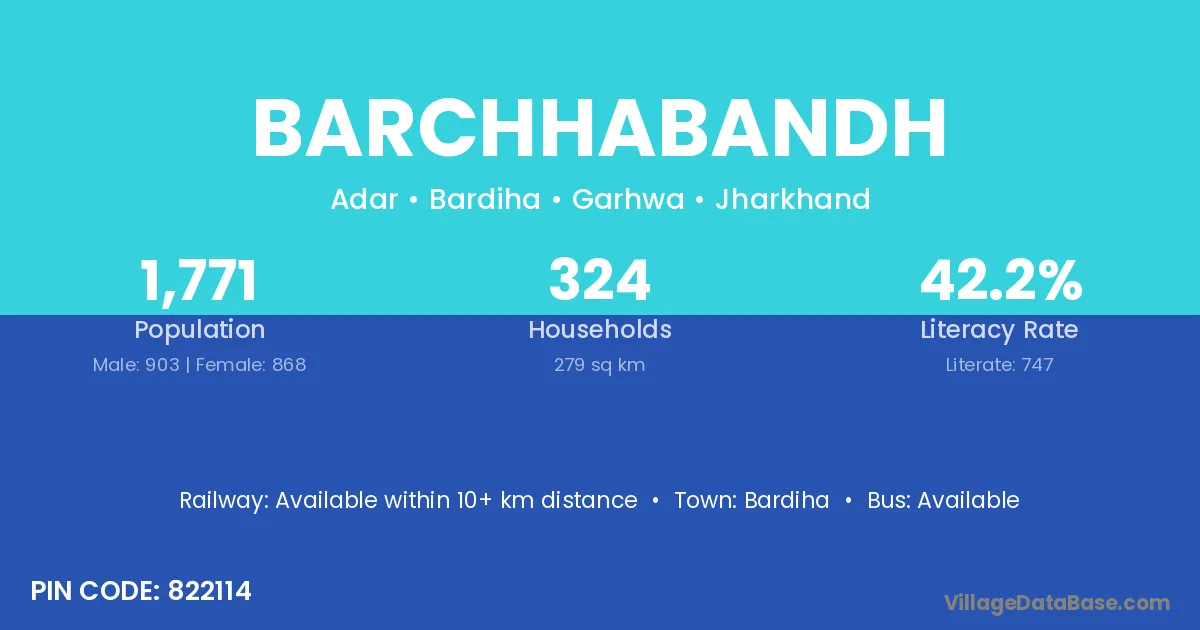 Barchhabandh village has a total population of 1,771 people, of which 903 are males and 868 are females.