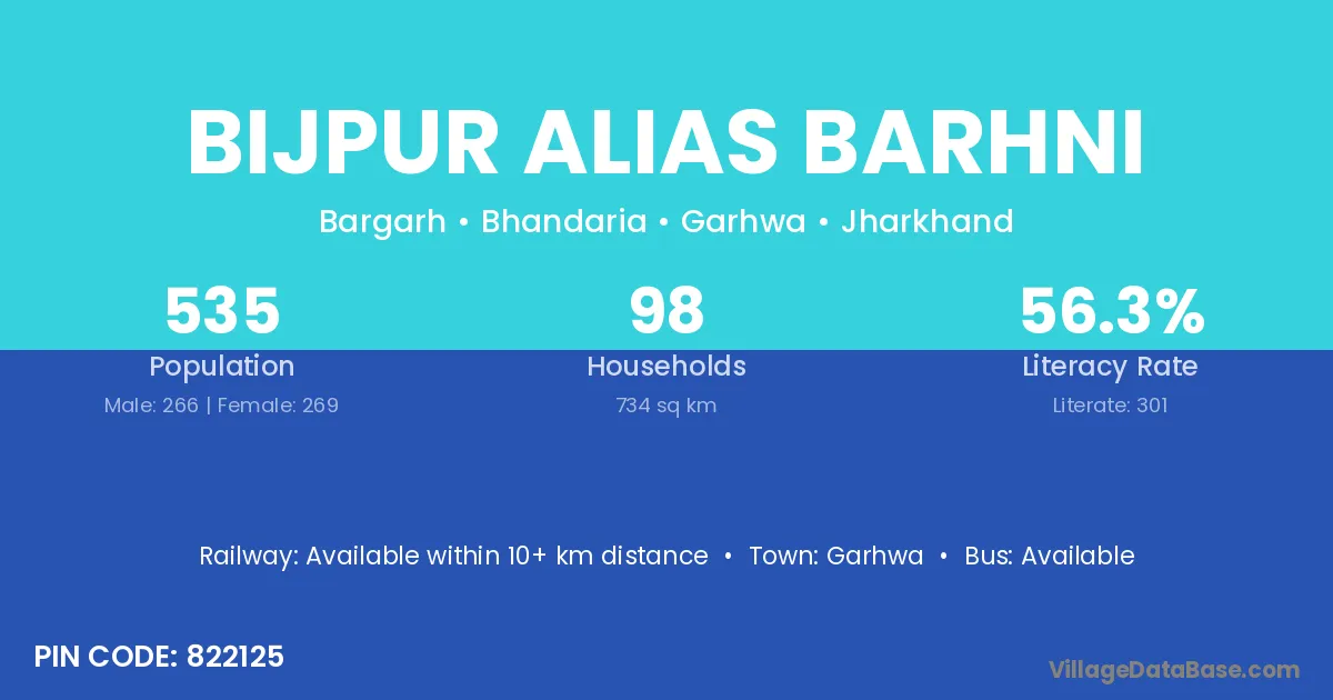 Bijpur Alias Barhni village has a total population of 535 people, of which 266 are males and 269 are females.