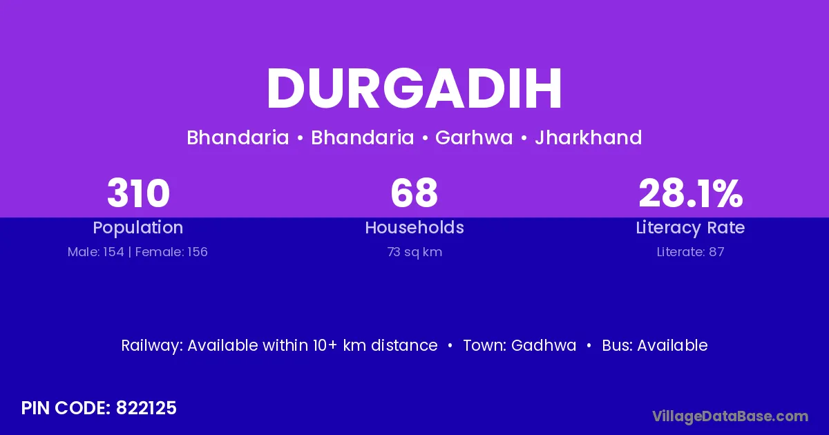 Gadhwa is the nearest town to Durgadih village for major economic activities
