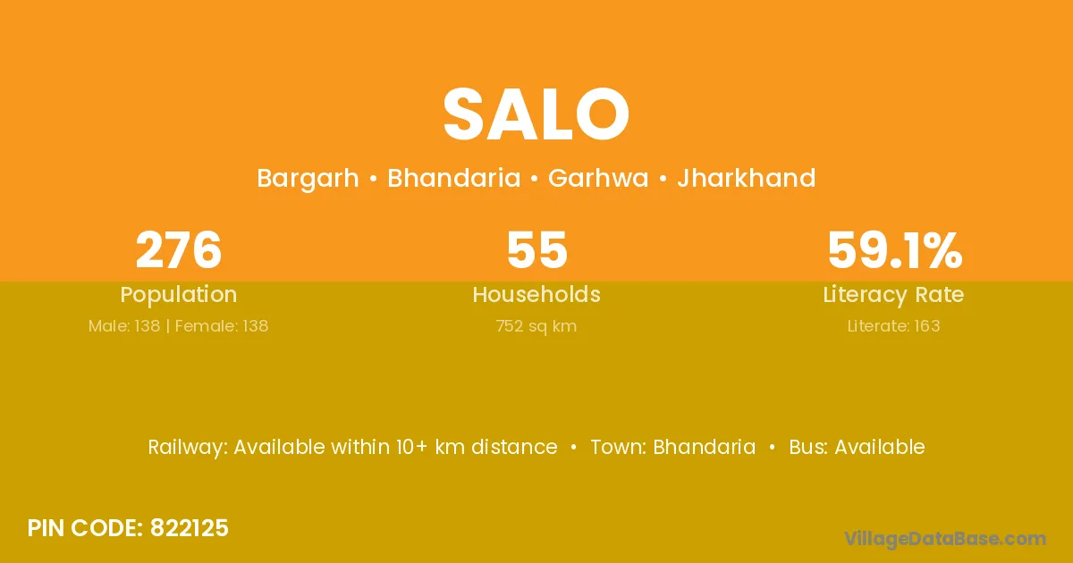 Salo village is located in the Bhandaria Subdivision of the Garhwa district in Jharkhand .
