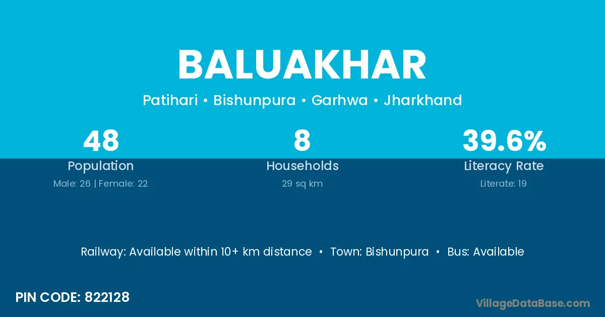 Baluakhar village has a total population of 48 people, of which 26 are males and 22 are females.