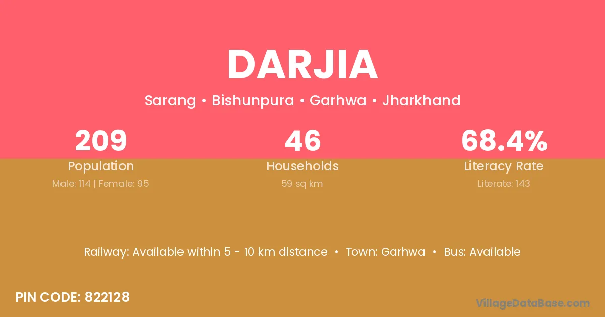 Darjia village has a total population of 209 people, of which 114 are males and 95 are females.