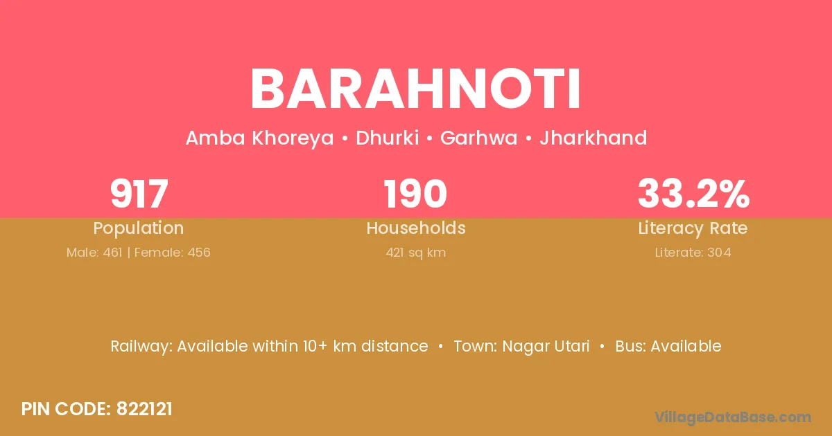 Barahnoti village has a total population of 917 people, of which 461 are males and 456 are females.
