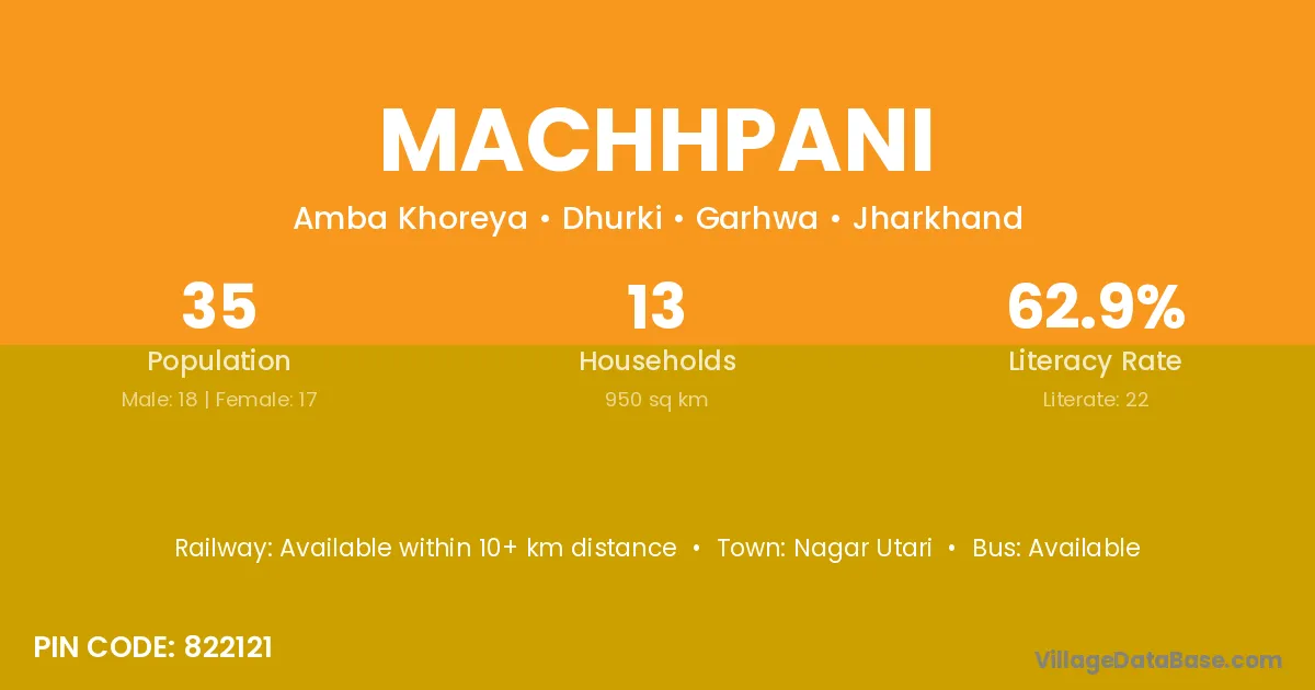 Machhpani village has a total population of 35 people, of which 18 are males and 17 are females.