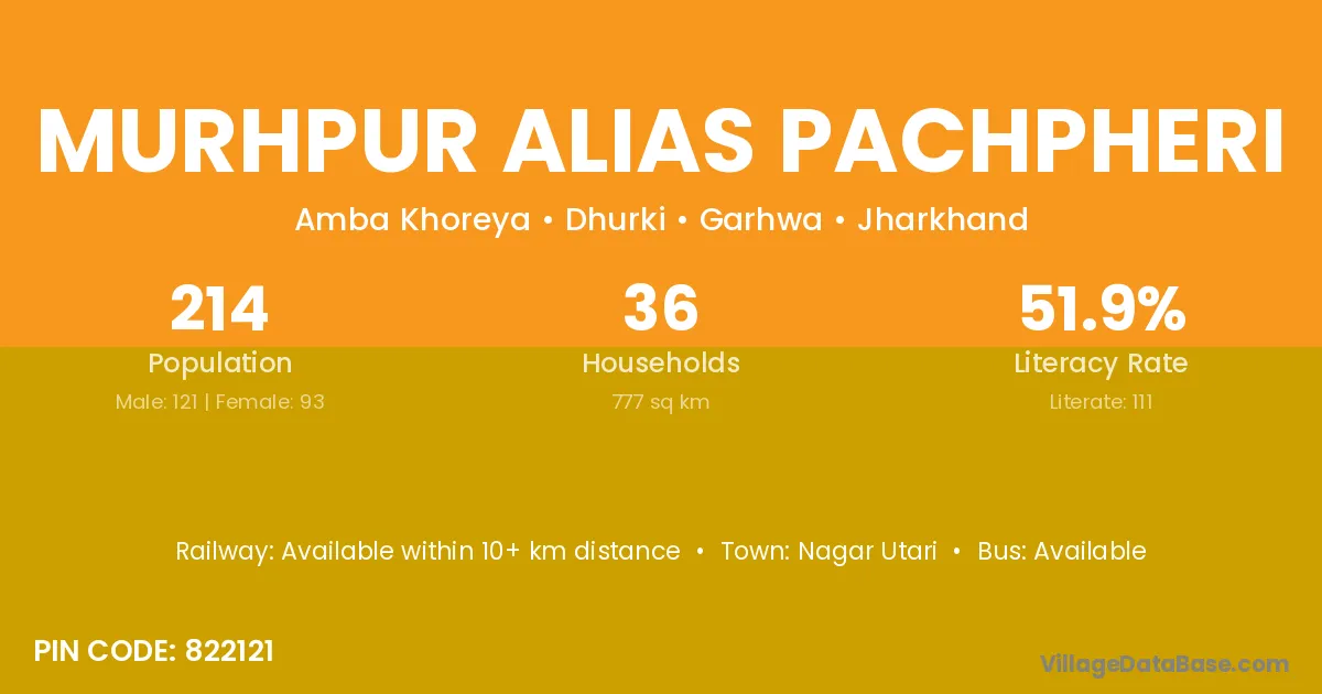Murhpur Alias Pachpheri village has a total population of 214 people, of which 121 are males and 93 are females.