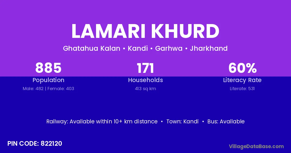 Lamari Khurd village has a total population of 885 people, of which 482 are males and 403 are females.