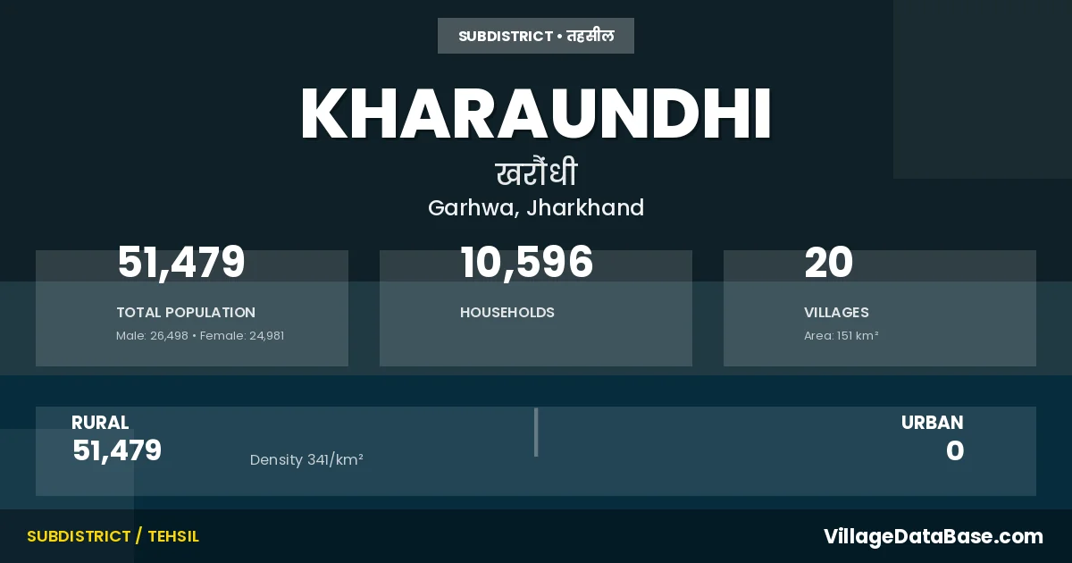 Kharaundhi is a town and Subdivision in the Garhwa district of the Jharkhand. In India, a Subdivision is a subdivision of a district responsible for the administration and revenue collection of a specific area within the district. Subdivisions play a crucial role in the local governance structure, contributing significantly to the development and administration of their communities.