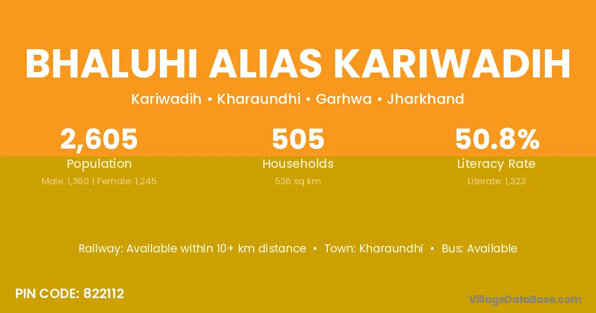 Bhaluhi Alias Kariwadih village has a total population of 2,605 people, of which 1,360 are males and 1,245 are females.