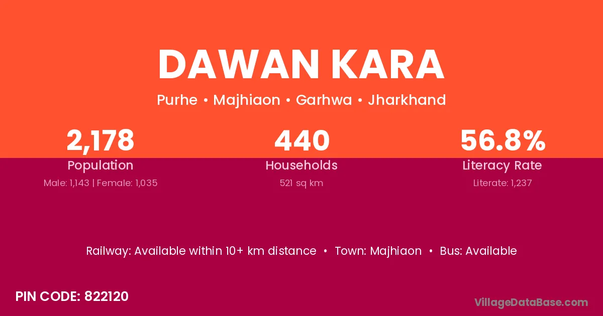 Dawan Kara village is located in the Majhiaon Subdivision of the Garhwa district in Jharkhand .