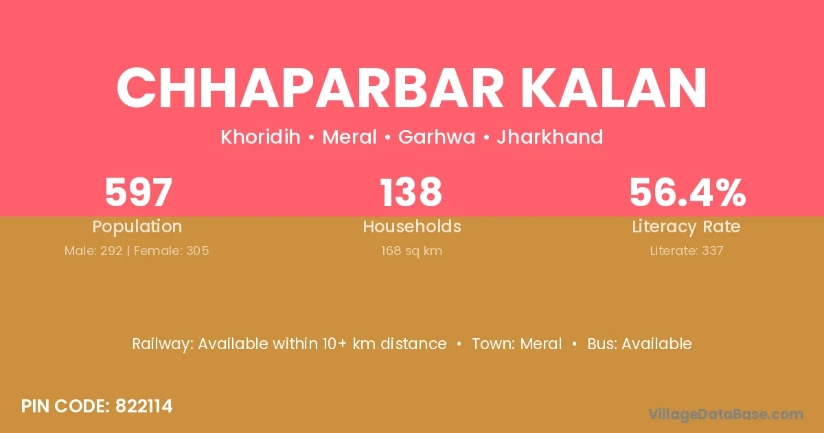 Chhaparbar Kalan village has a total population of 597 people, of which 292 are males and 305 are females.