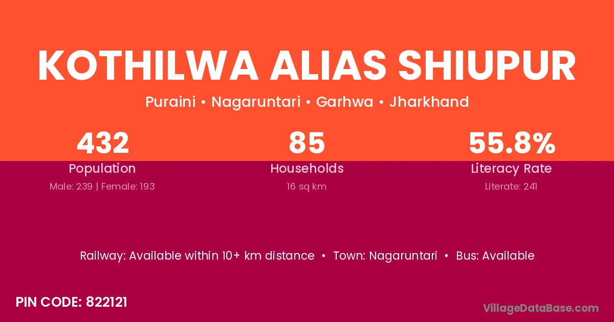 Kothilwa Alias Shiupur village has a total population of 432 people, of which 239 are males and 193 are females.