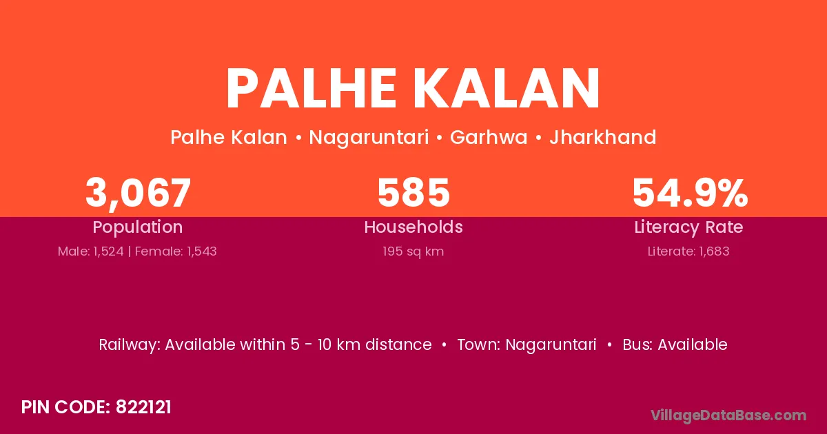 Palhe Kalan village has a total population of 3,067 people, of which 1,524 are males and 1,543 are females.