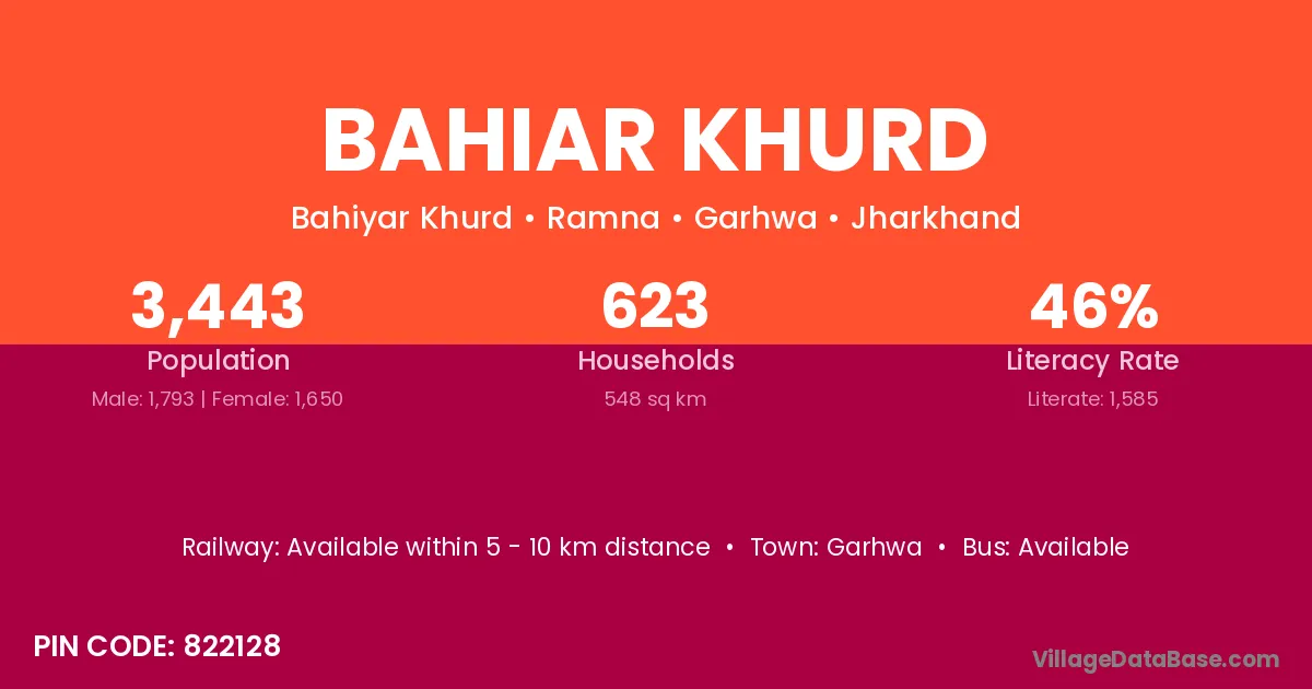 Garhwa is the nearest town to Bahiar Khurd village for major economic activities
