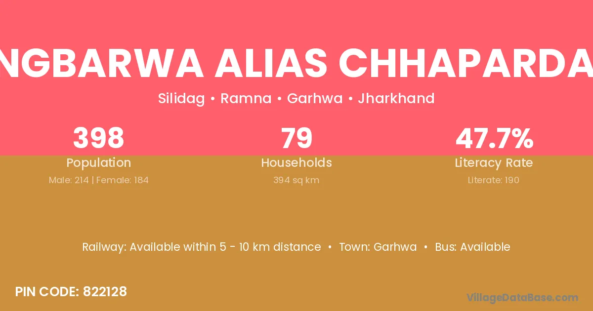 Sangbarwa Alias Chhapardaga village has a total population of 398 people, of which 214 are males and 184 are females.