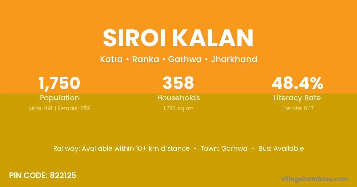 Garhwa is the nearest town to Siroi Kalan village for major economic activities