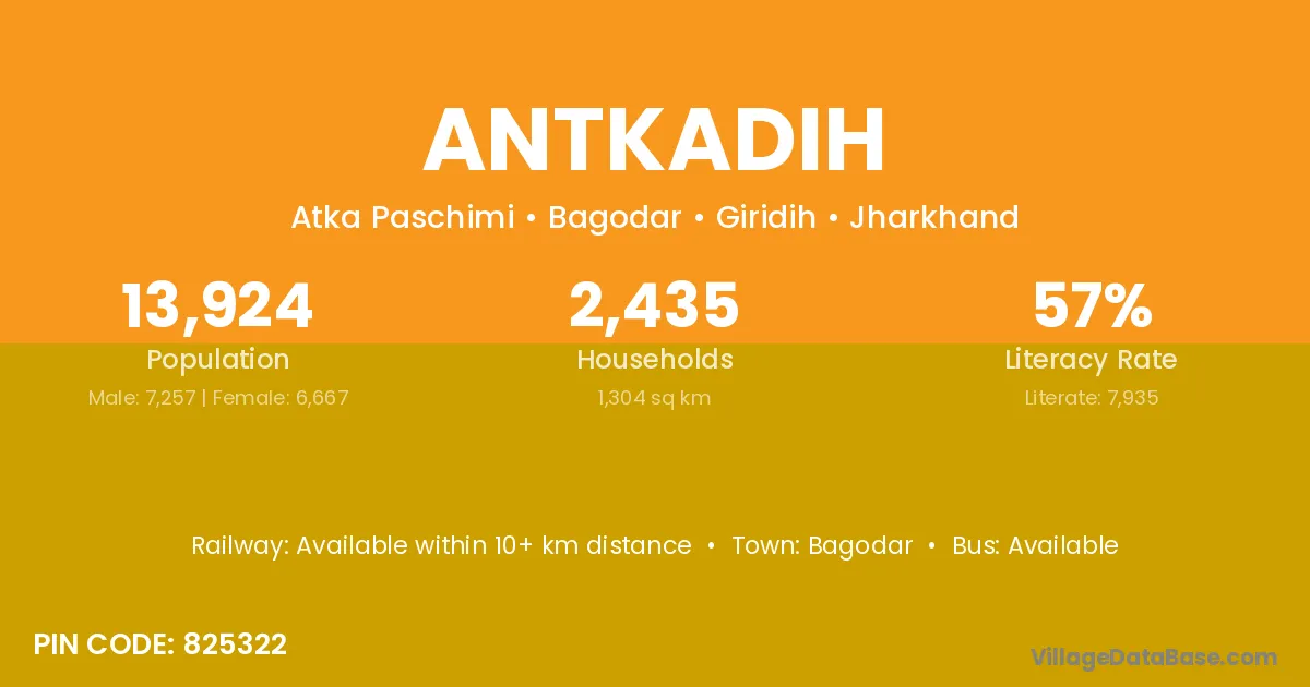 Bagodar is the nearest town to Antkadih village for major economic activities