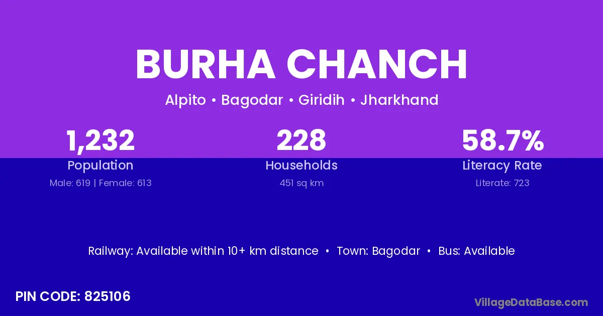 Bagodar is the nearest town to Burha Chanch village for major economic activities