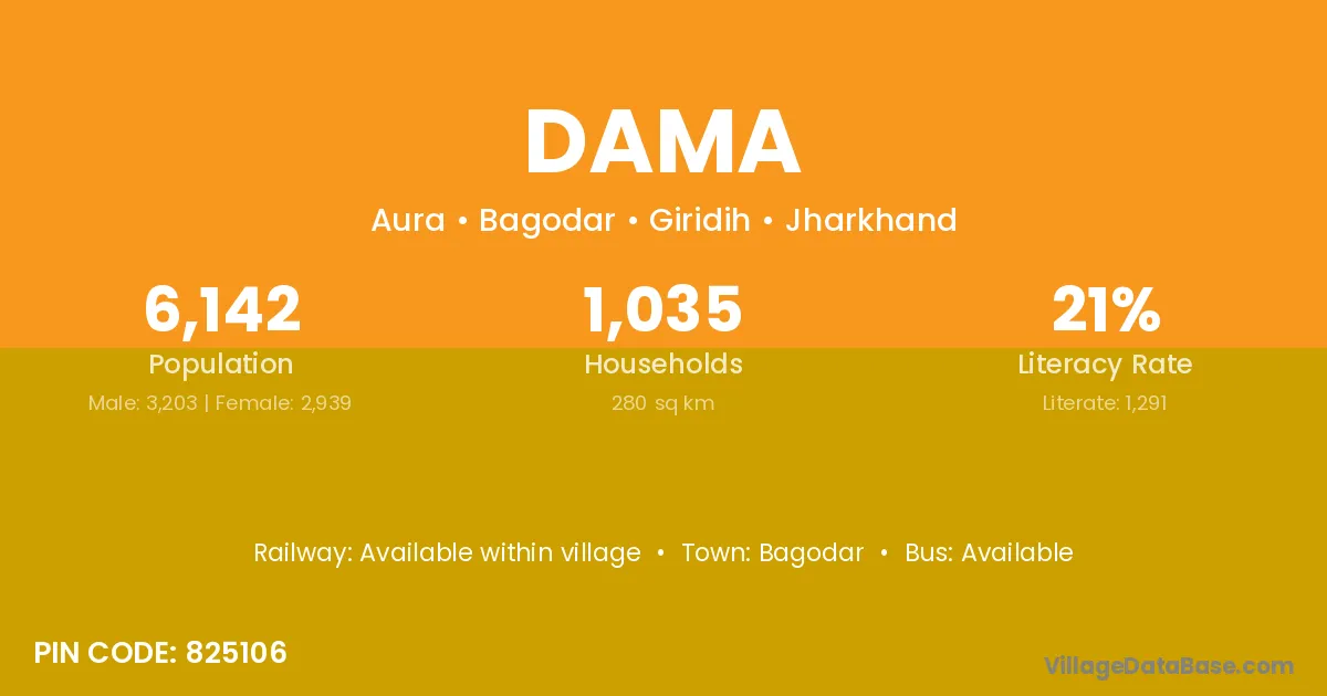 According to Census 2011 information, the village code of Dama village is 825106.