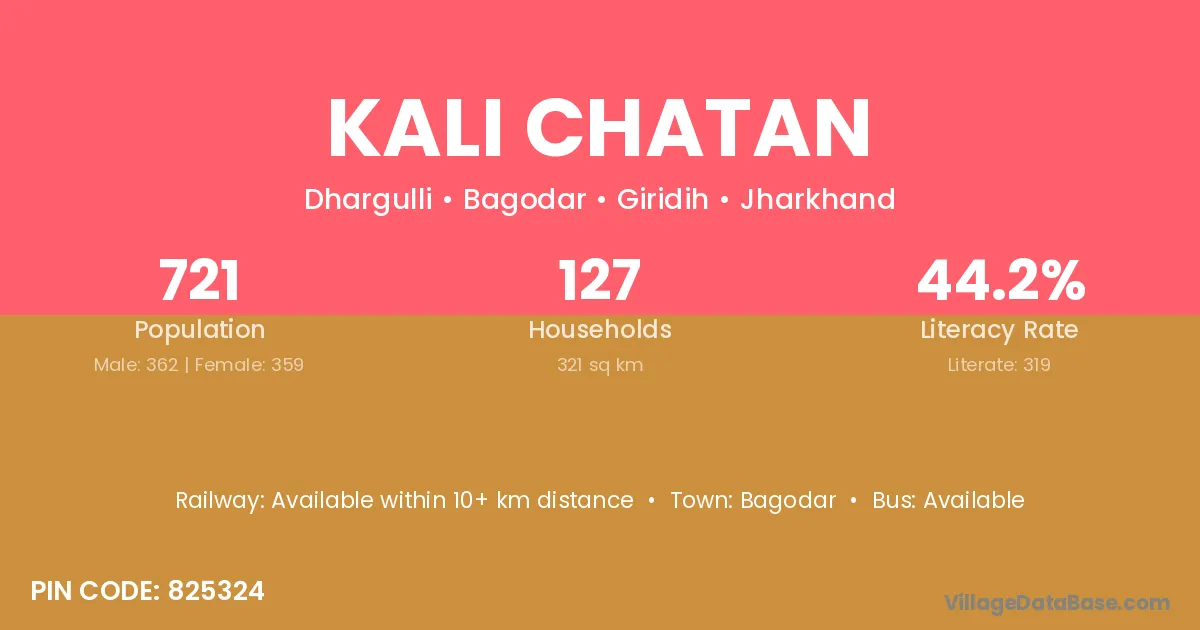 Kali Chatan village has a total population of 721 people, of which 362 are males and 359 are females.