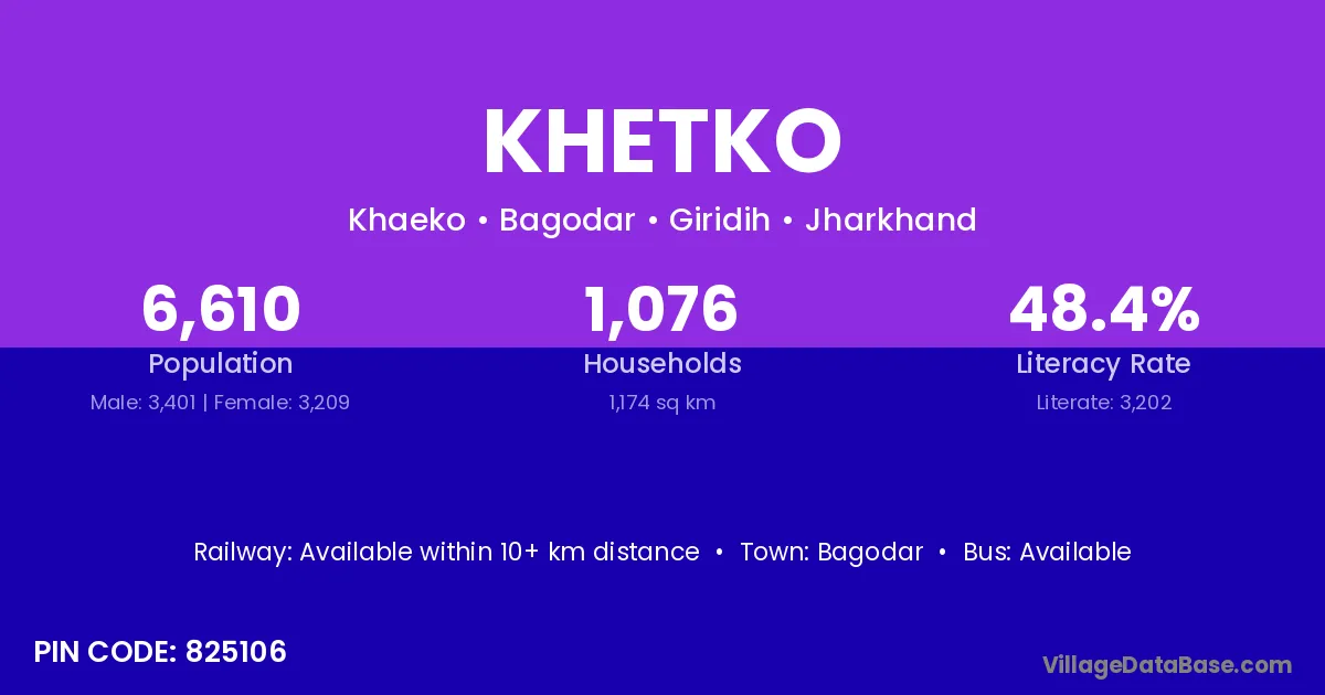 Bagodar is the nearest town to Khetko village for major economic activities