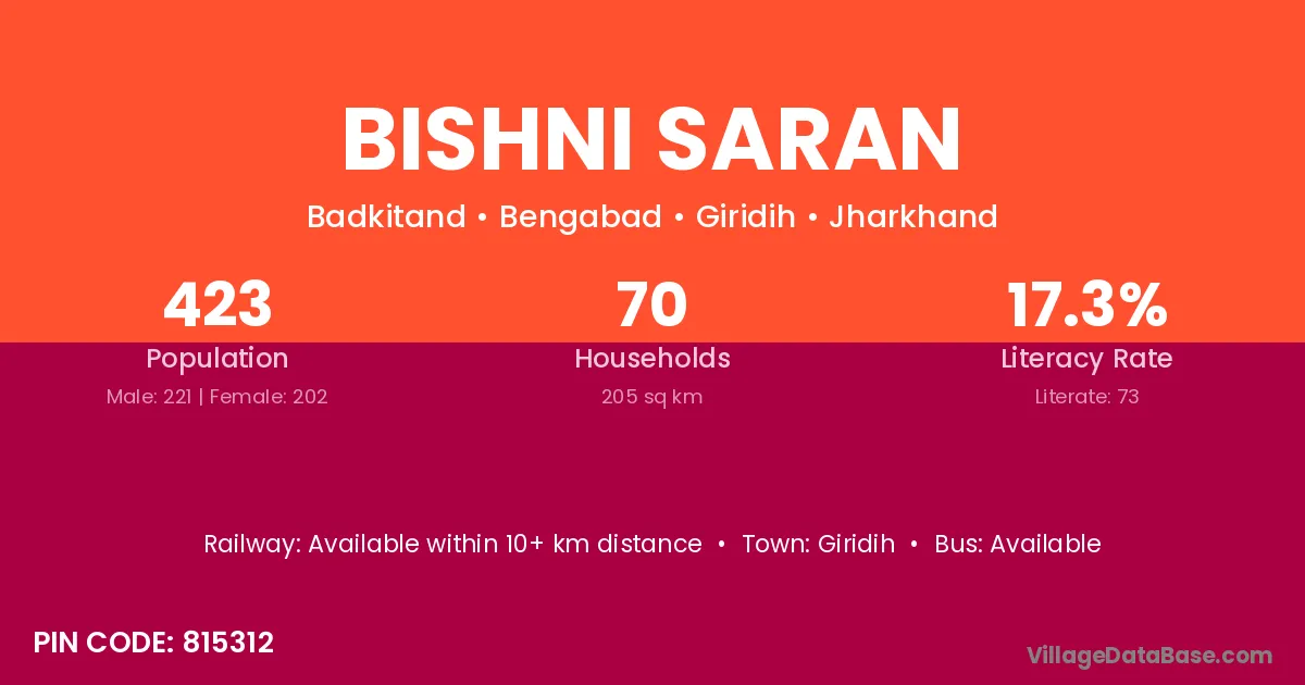 Giridih is the nearest town to Bishni Saran village for major economic activities